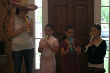 Michelle, Haley, Chloe and Kerry play a recorder quartet at Baylee's house