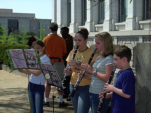 Emily, Leah, Teresa and Eric play a concert in front of the Smithsonian Natural History Museum