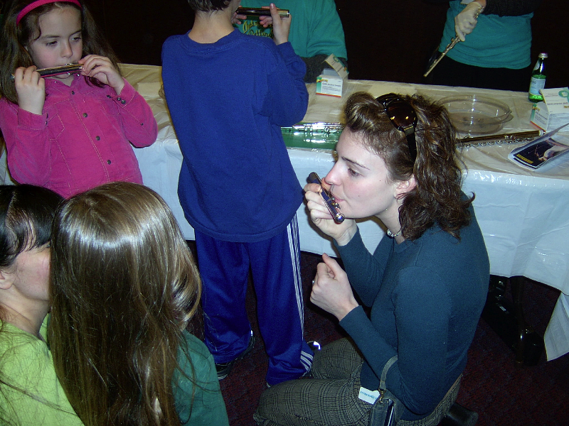 Michelle teaches how to blow on the flute