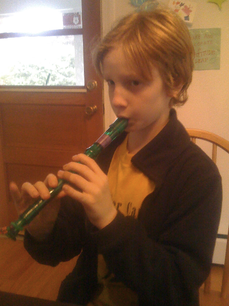 Jeremy practices recorder