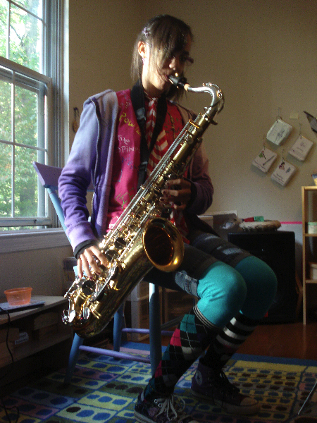 Justine plays sax, age 15